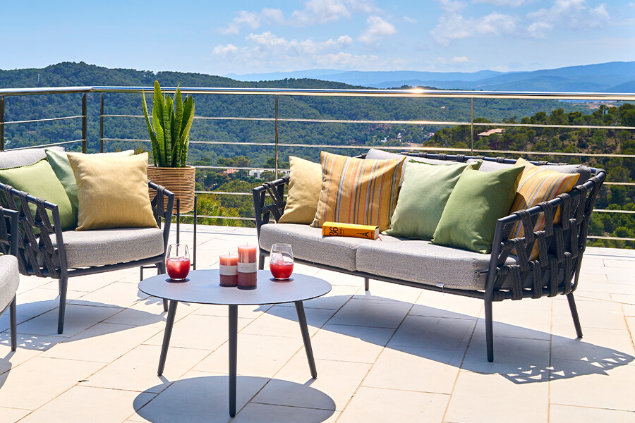 A sequence of stripes over a panama structure to give an electrifying touch to outdoors and indoors. Agora® Thunder is a new alternative to the traditional stripe, with moderate shades that combine easily with other colours and textures.